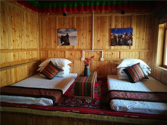 走進(jìn)安果村村民貢保杰布的家中,記者看到了非常干凈的藏式風(fēng)格民宿包間。貢保杰布今年50歲,妻子貢去乎吉與他同齡,有兩個(gè)兒子:貢保熱旦、貢保杰,4人都在家務(wù)農(nóng)。他家中共有耕地8畝,草場(chǎng)面積350畝,家中有23頭編雌牛。2018年,貢保杰布將自己的庭院打造成鄉(xiāng)村民宿,在旅游旺季,按照每間客房300元的收費(fèi)標(biāo)準(zhǔn),一年接待游客收入達(dá)到5000元左右。