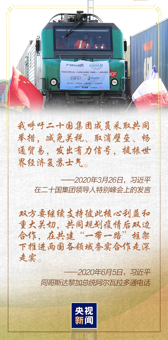 “中歐兩大經(jīng)濟體應該發(fā)揮世界經(jīng)濟‘雙引擎’作用,拉動世界經(jīng)濟復蘇,共同支持科學有序復工復產,加強宏觀經(jīng)濟政策協(xié)調,維護全球產業(yè)鏈供應鏈穩(wěn)定通暢。” 6月22日晚,視頻會見歐洲理事會主席米歇爾和歐盟委員會主席馮德萊恩時,習近平主席的表態(tài)為面臨下行壓力的世界經(jīng)濟注入信心。